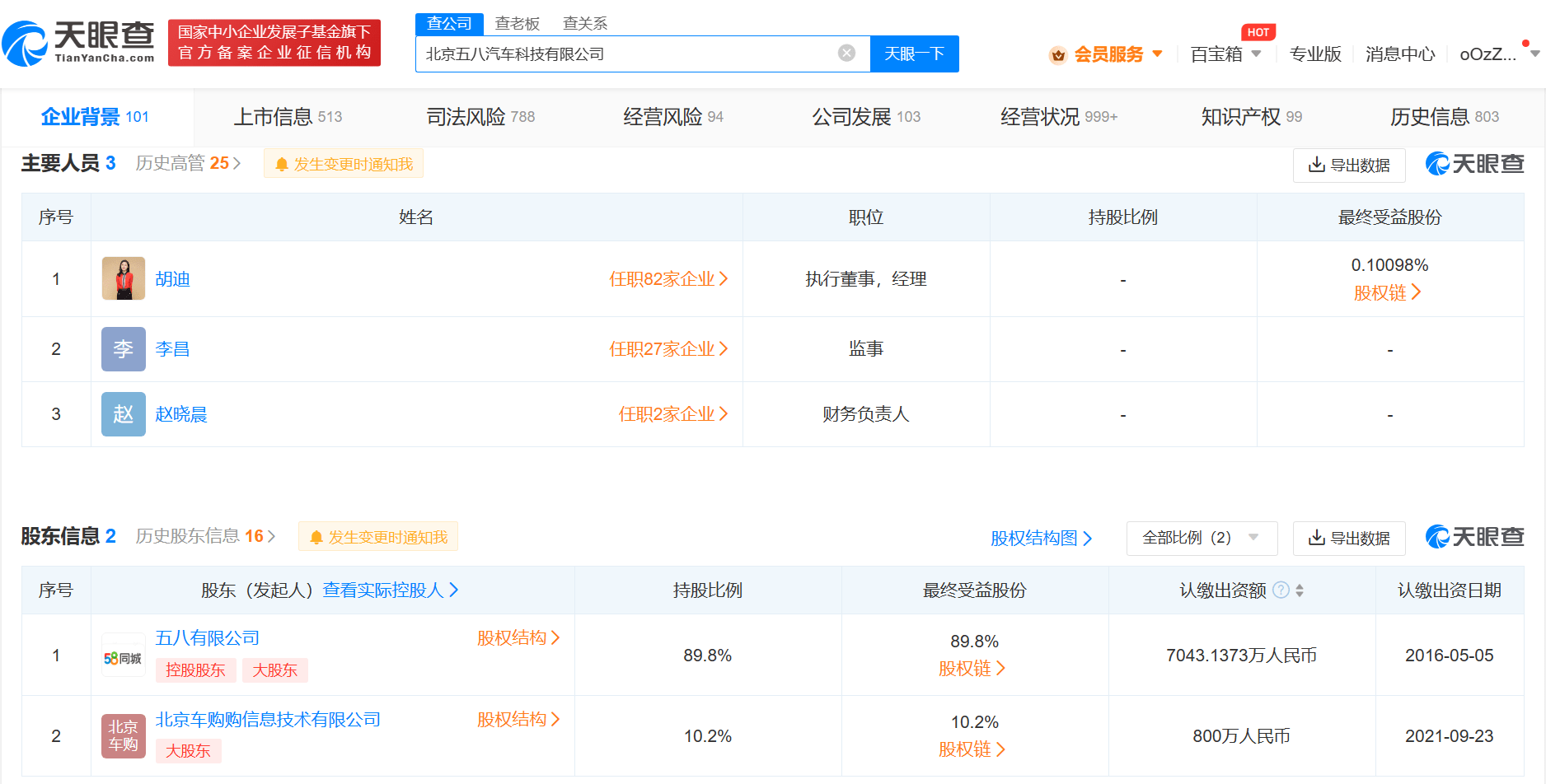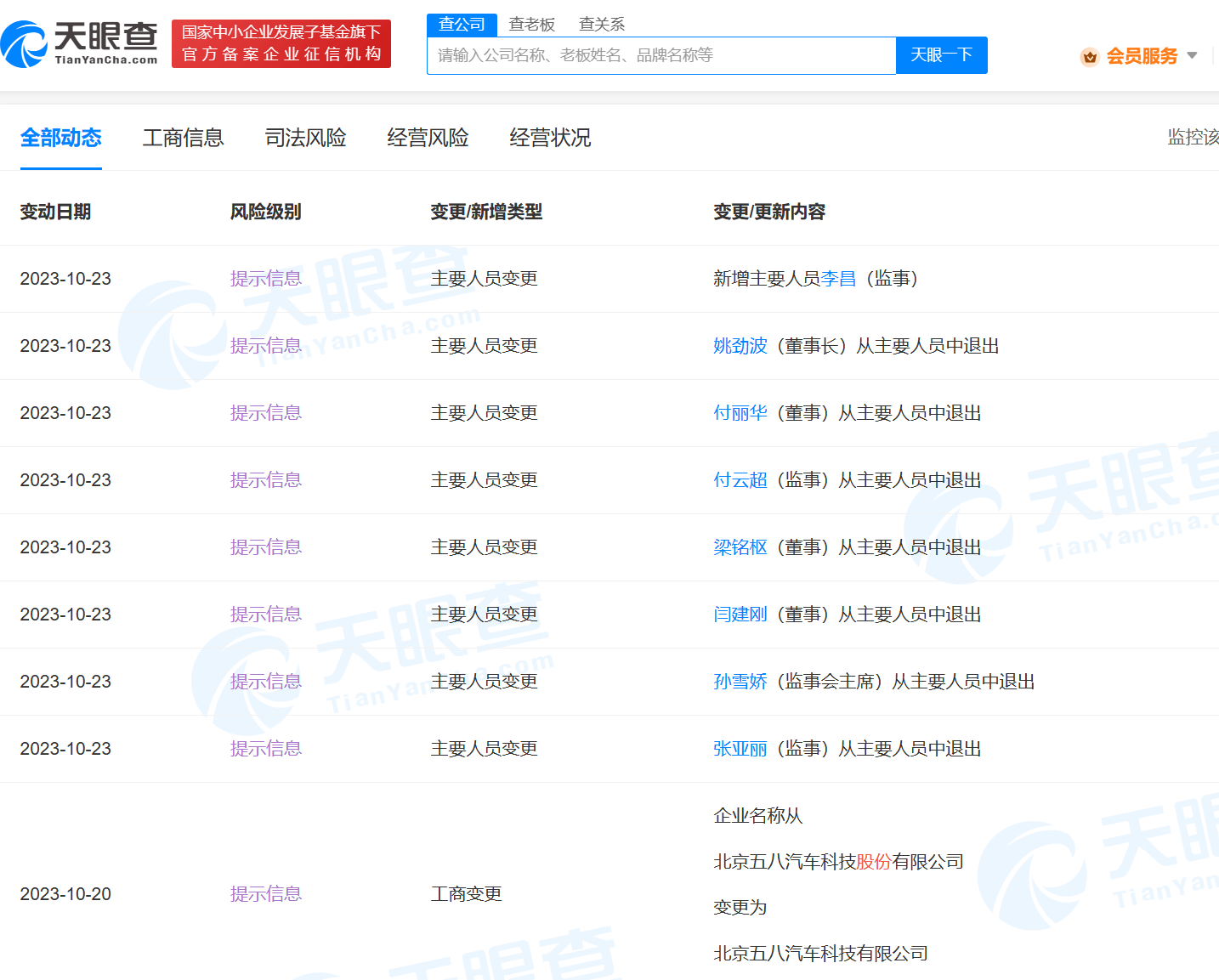 天眼查App显示,近日,北京五八汽车科技股份有限公司发生多项工商变更,企业名称变更为北京五八汽车科技有限公司,企业类型由股份有限公司(非上市、自然人投资或控股)变更为其他有限责任公司,同时,公司原股东全部退出,新增五八有限公司、北京车购购信息技术有限公司为股东,姚劲波卸任董事长,付丽华、梁铭枢等主要人员卸任,法定代表人、经理胡迪任执行董事,同时新增监事李昌。