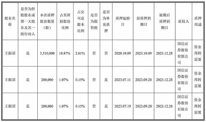无独有偶,王振滔也质押了康华生物的持股。