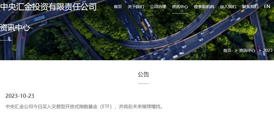 10月23日,汇金公告称,“中央汇金公司今日买入交易型开放式指数基金(ETF),并将在未来继续增持。”