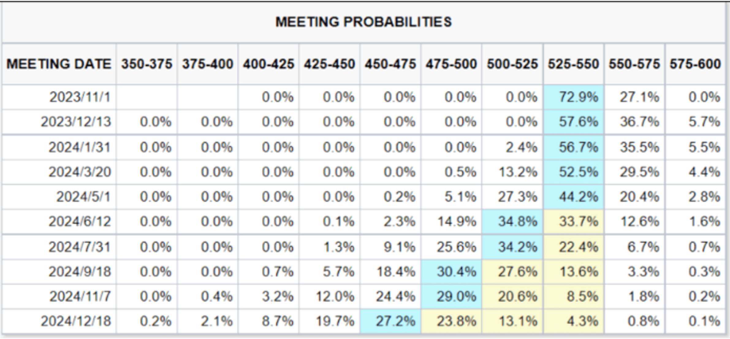 表1 市场预期美联储加息的概率分布(截至10月6日,%)