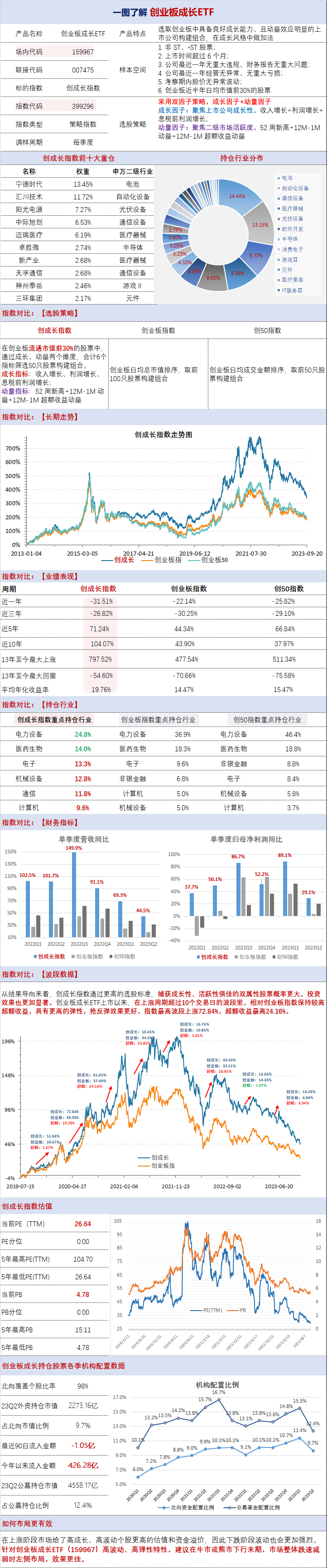 昨日汇金出手买入ETF,在极端低估下入场是一个相对明确的信号,此处大概率位于底部区间,且一定程度上扭转市场预期,随着下跌结束止跌信号出现,反弹也会随之而来,而创业板成长ETF(159967)高弹性比较适合反弹行情。