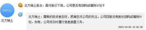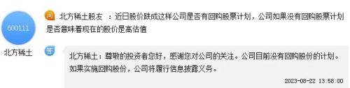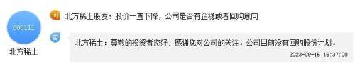 不同于多家上市公司近日纷纷发布回购计划。在不少投资者呼吁北方稀土稳价的情况下,公司近几个月来均表示,无回购计划。“V观财报”发现,此事的最新回应就在上周。