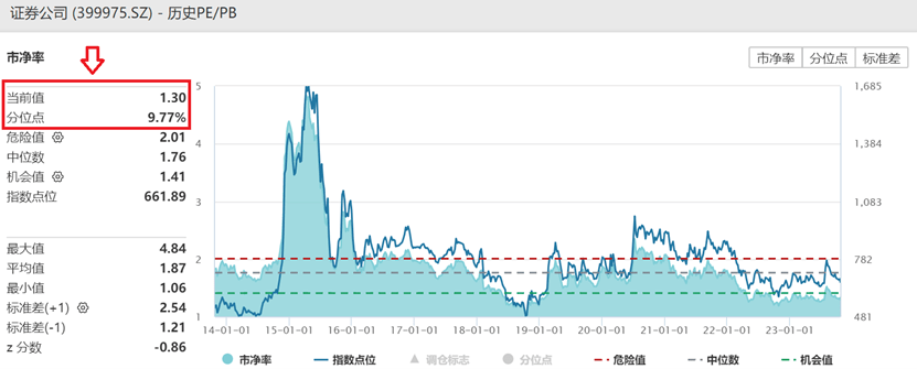 近期市场快速回调,估值水平处于历史低位。截至10月23日,证券指数ETF(560090)标的指数市净率(PB)为1.3倍,处于上市以来9.77%的百分点,低于历史90%以上的时间。与此同时,截至二季度基金重仓持股比例仅为0.26%,持仓比例极低,板块配置优势凸显。