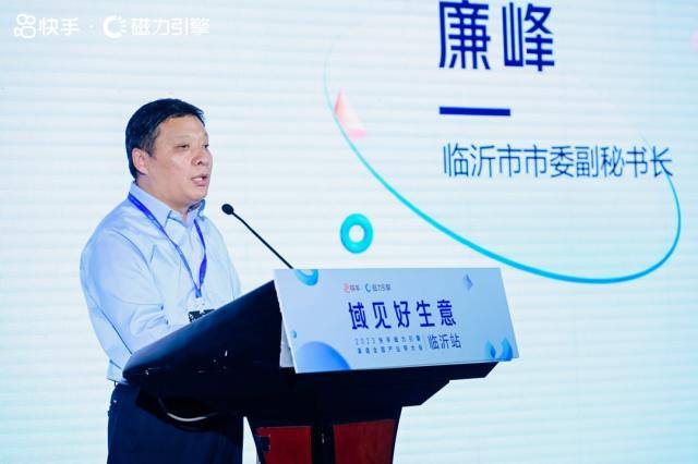 临沂市委副秘书长廉峰致辞表示,临沂是一座商贸物流型城市,作为北方最大的短视频直播电商基地而机遇无限,他肯定电商企业家们层次高实力强、有情怀有担当,是助力临沂发展的先锋力量。他希望通过“最大的热情、最好的政策、最优质的服务”跟快手这样的短视频直播平台、电商企业家们深度合作,谱写临沂电商发展新篇章。