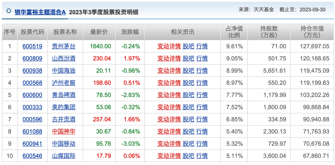 具体到个股,五粮液退出前十大重仓股,保留了茅台、山西汾酒、泸州老窖和古井贡酒。