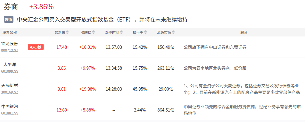 券商概念午后直线拉升,太平洋涨停,锦龙股份午后直线拉板,天晟新材涨停,华创云信大涨8%。