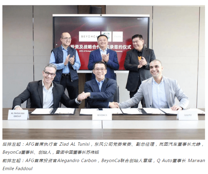 消息面上看,10月23日上午十点,豪华智能电动汽车品牌BeyonCa(中文名称“宾理”)在公众号发布了一则消息,10月20日,公司与总部位于沙特阿拉伯的投资集团Al Faisaliah Group Holding Company(AFG)签署了投资及战略合作备忘录。
