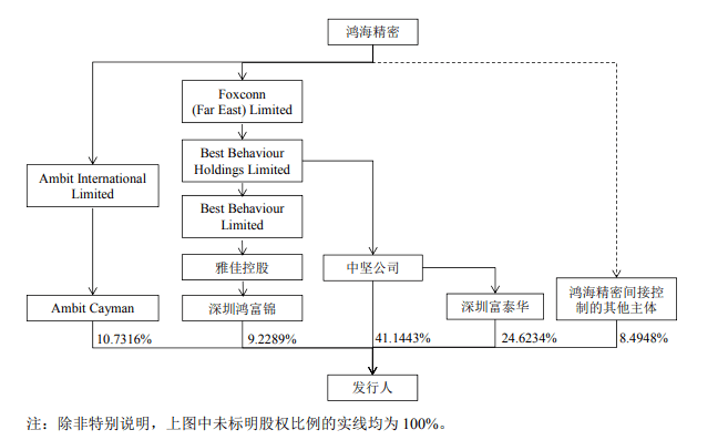 尽管鸿海精密在两家公司背后持有大量股份,但值得注意的是,两家公司均声称不存在实际控制人。工业富联表示,不存在实际控制人的原因是,公司的控股股东中坚公司是一家投资控股型公司,由鸿海精密间接持有其100%的权益。由于鸿海精密本身不存在实际控制人,因此本公司也不存在实际控制人。这一声明似乎在强调,尽管鸿海精密在两家公司中拥有大量股份,但它们并没有直接控制或主导这两家公司的决策。