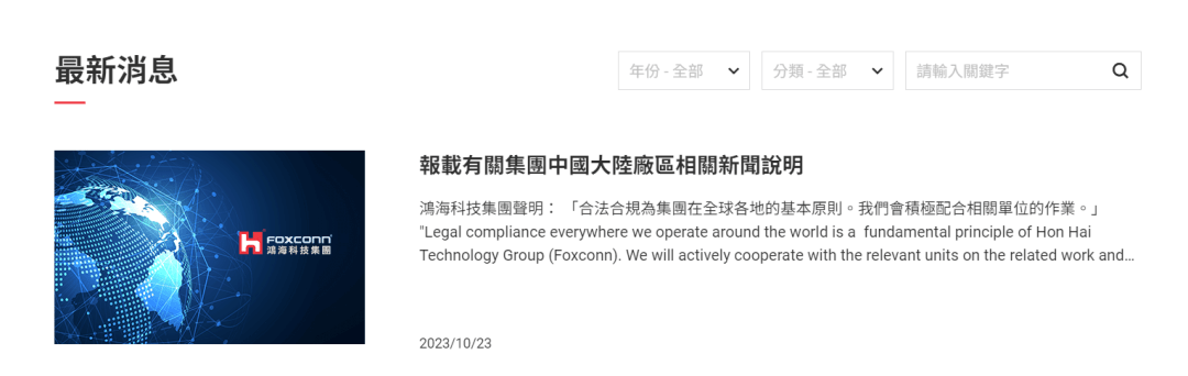 对于相关新闻报道,工业富联与鹏鼎控股背后的重要股东鸿海精密工业股份有限公司(以下简称“鸿海精密”)在其官网上回应称:“合法合规为集团在全球各地的基本原则,我们会积极配合相关单位的作业”。