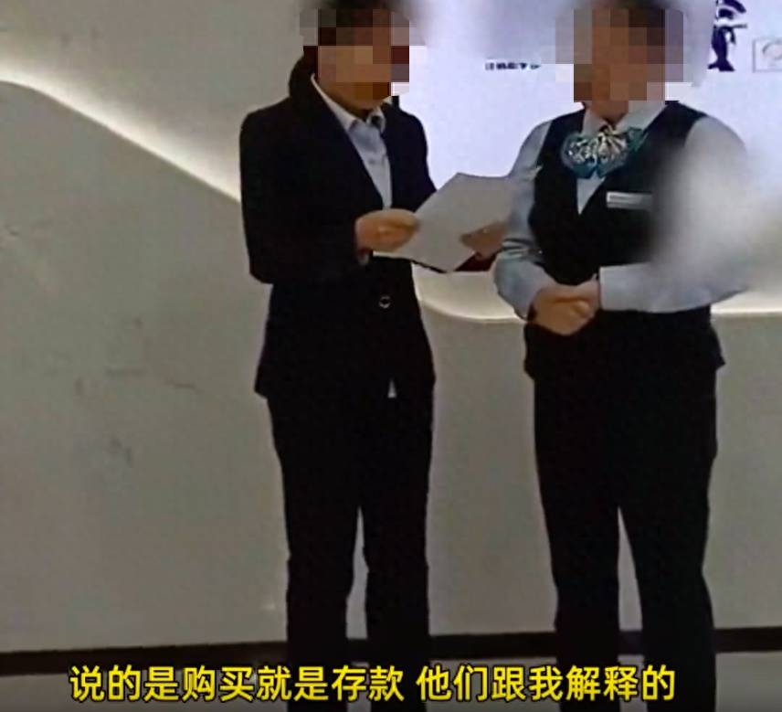 视频中,女子表示:“你说清楚我购买的是什么?居然说的是购买就是存款,存款就是购买,他们跟我解释的。那么我购买了什么啊?”