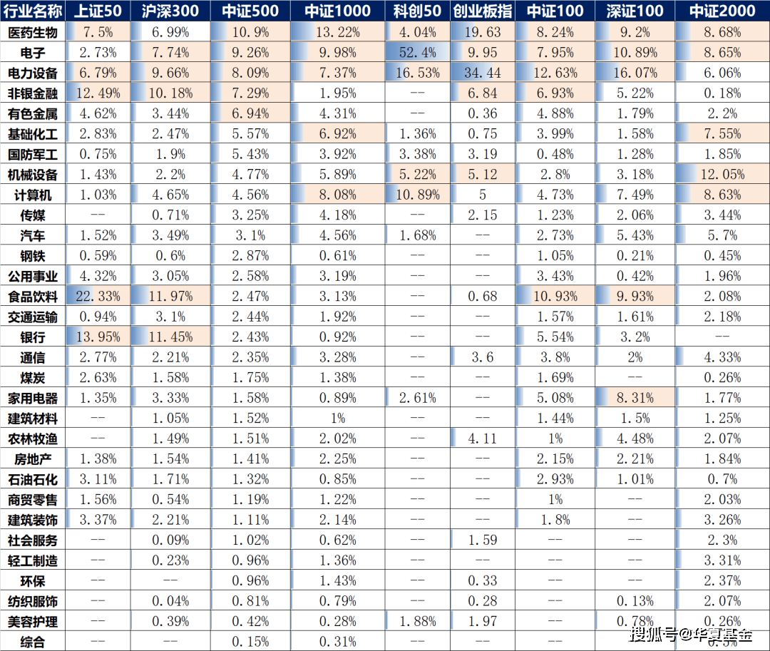 生物医药、电子行业、电力设备进入了8个宽基指数的前五大权重行业,颇受“偏爱”