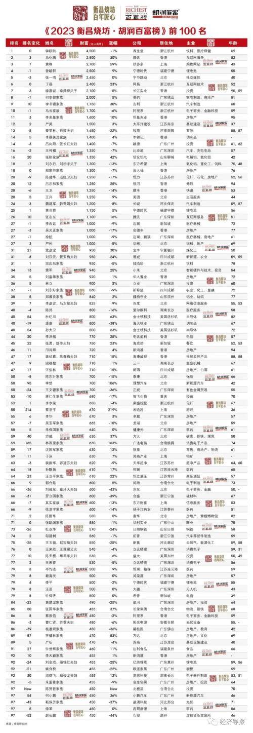 下附2023胡润百富榜前100名