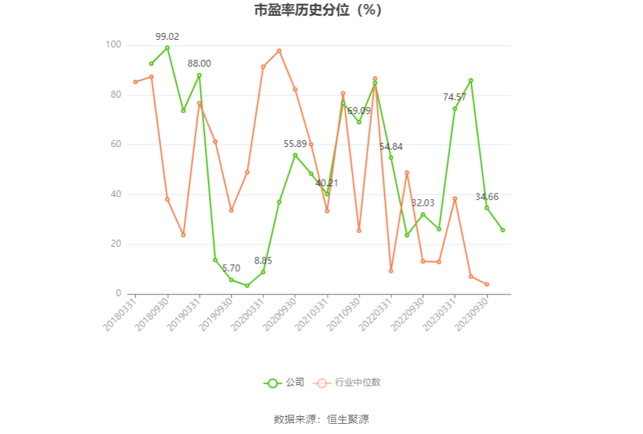 市盈率为负时,不显示当期分位数,会导致折线图中断。