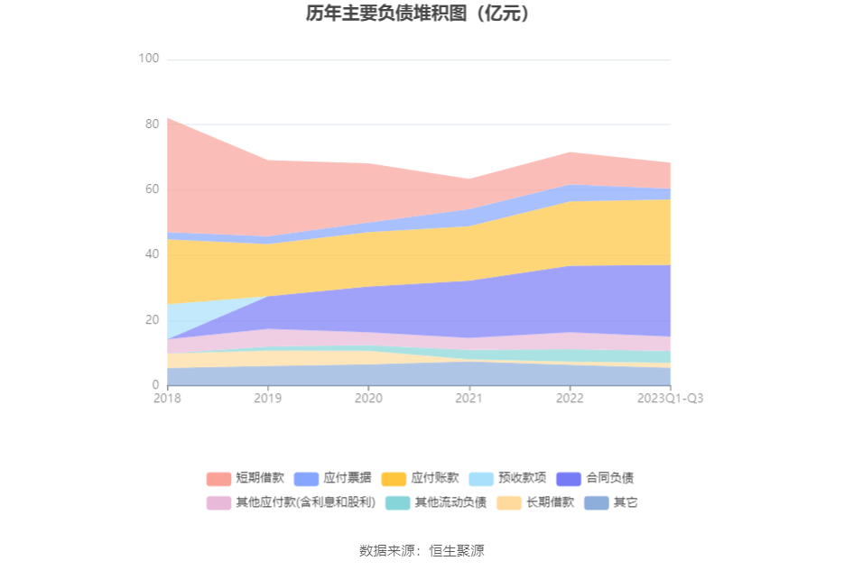 负债重大变化方面,截至2023年三季度末,公司短期借款较上年末减少19.39%,占公司总资产比重下降2.13个百分点;应付票据较上年末减少35.88%,占公司总资产比重下降1.73个百分点;合同负债较上年末增加7.50%,占公司总资产比重下降0.61个百分点;应付职工薪酬较上年末减少23.90%,占公司总资产比重下降0.74个百分点。
