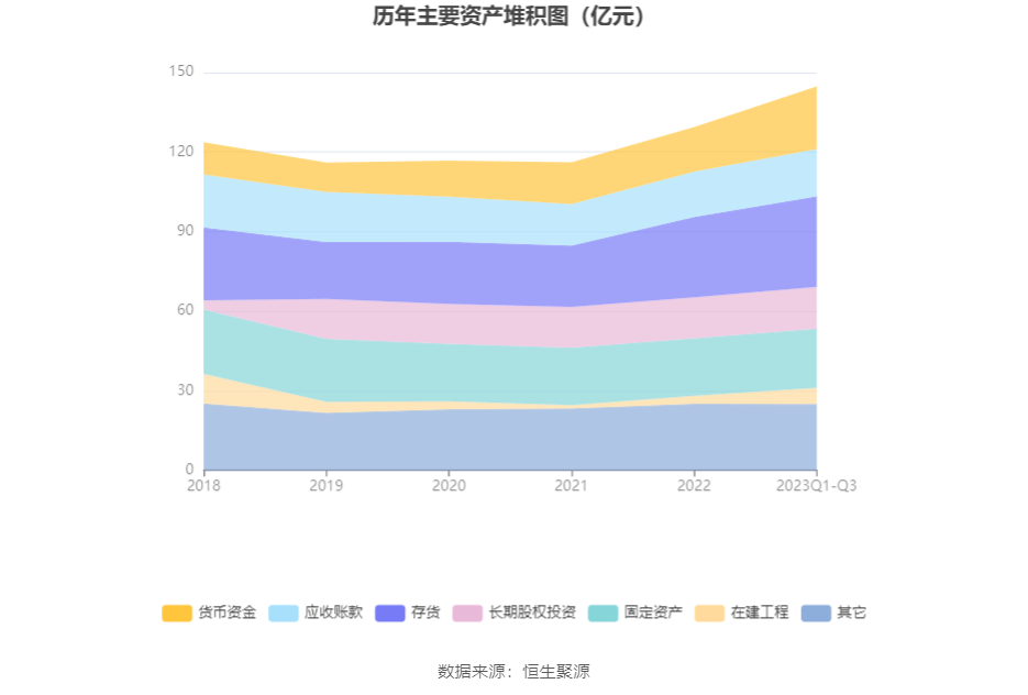 资产重大变化方面,截至2023年三季度末,公司货币资金较上年末增加40.05%,占公司总资产比重上升3.29个百分点;在建工程较上年末增加100.48%,占公司总资产比重上升1.86个百分点;固定资产较上年末增加2.83%,占公司总资产比重下降1.35个百分点;长期股权投资较上年末增加1.32%,占公司总资产比重下降1.13个百分点。