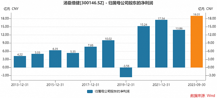 第三季度,汤臣倍健营业收入21.86亿元,同比增长12.75%,绝对值不及前两个季度;归属于上市公司股东的净利润3.56亿元,同比下滑了17.96%,也不及上半年。