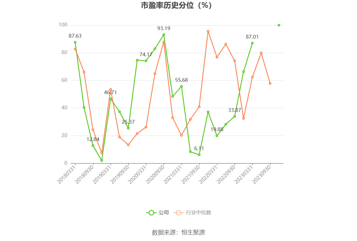 市盈率为负时,不显示当期分位数,会导致折线图中断。