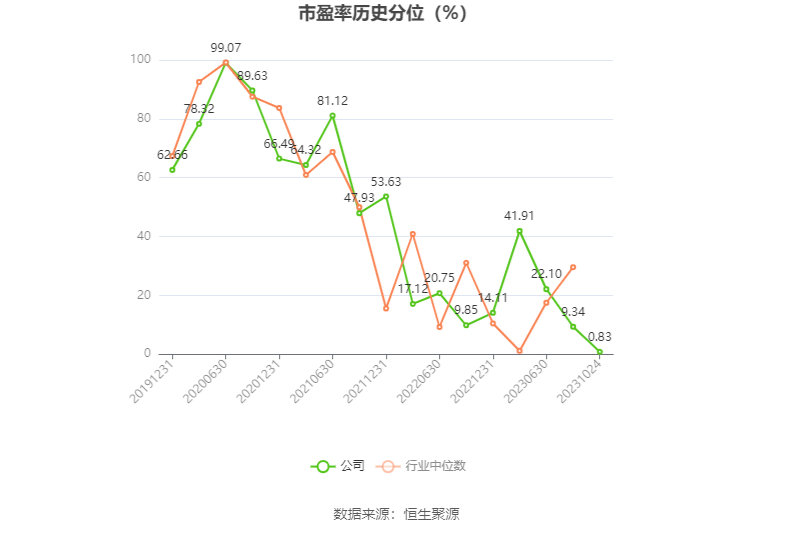 市盈率为负时,不显示当期分位数,会导致折线图中断。
