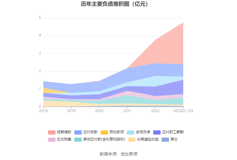 负债重大变化方面,截至2023年三季度末,公司短期借款较上年末增加78.03%,占公司总资产比重上升3.86个百分点;合同负债较上年末减少71.07%,占公司总资产比重下降2.43个百分点;应付职工薪酬较上年末增加52.87%,占公司总资产比重上升0.94个百分点;其他应付款(含利息和股利)较上年末增加74.26%,占公司总资产比重上升0.64个百分点。
