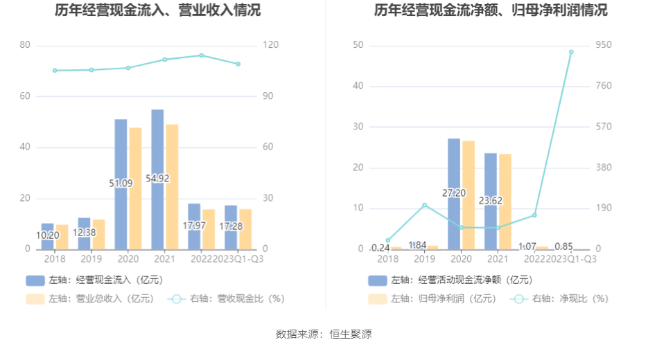 2023年前三季度,公司营业收入现金比为109.26%,净现比为921.89%。