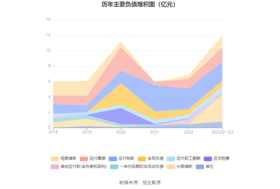 负债重大变化方面,截至2023年三季度末,公司短期借款较上年末增加221.01%,占公司总资产比重上升1.49个百分点;应付票据较上年末增加49.98%,占公司总资产比重上升0.73个百分点;其他应付款(含利息和股利)较上年末减少58.40%,占公司总资产比重下降0.54个百分点;应付账款较上年末减少9.40%,占公司总资产比重下降0.59个百分点。