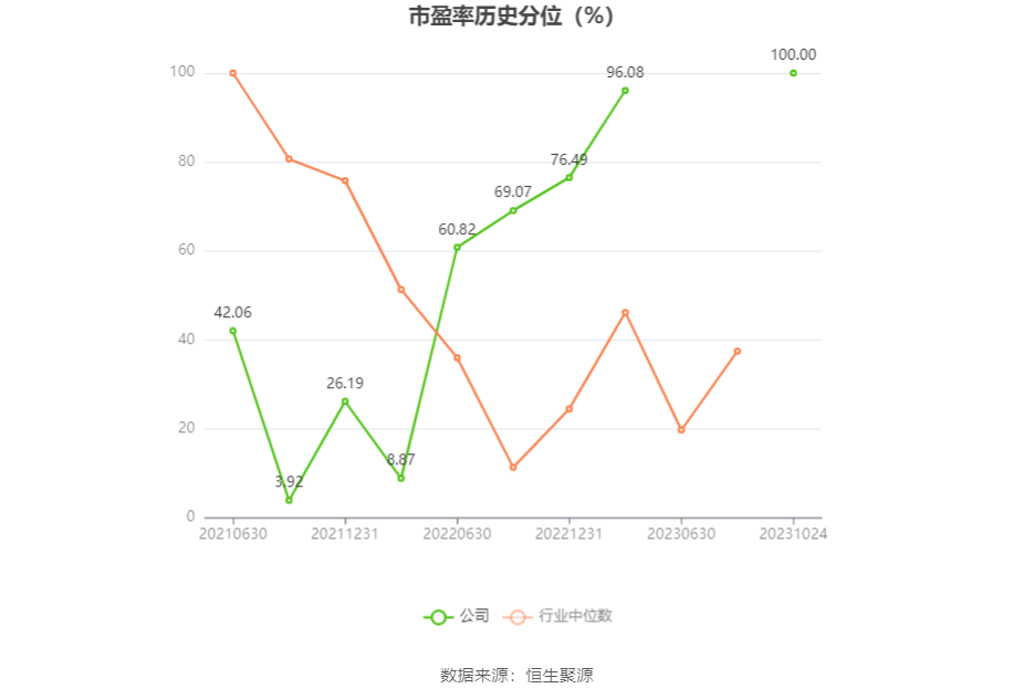 市盈率为负时,不显示当期分位数,会导致折线图中断。