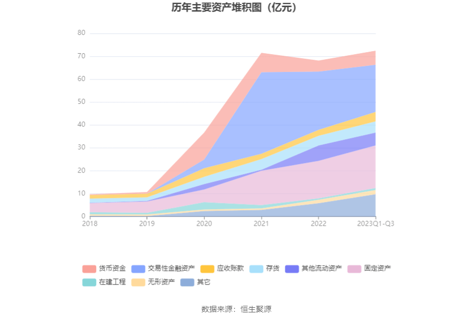 资产重大变化方面,截至2023年三季度末,公司交易性金融资产较上年末减少19.01%,占公司总资产比重下降8.88个百分点;其他流动资产较上年末减少15.95%,占公司总资产比重下降2.07个百分点;应收账款较上年末增加59.10%,占公司总资产比重上升1.88个百分点;固定资产较上年末增加13.28%,占公司总资产比重上升1.57个百分点。