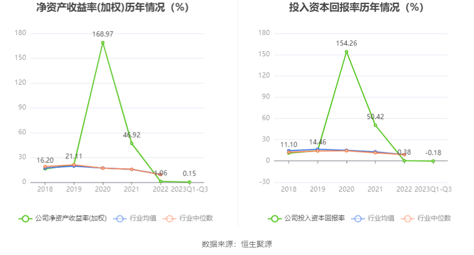 数据显示,2023年前三季度公司加权平均净资产收益率为0.15%,较上年同期下降0.47个百分点;公司2023年前三季度投入资本回报率为-0.18%,较上年同期下降0.61个百分点。