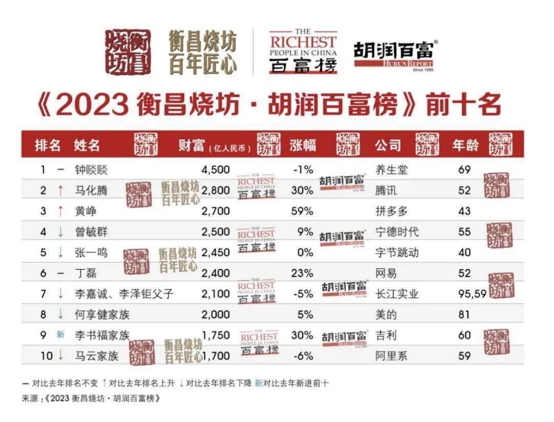 红星资本局10月24日消息,《2023衡昌烧坊·胡润百富榜》发布,前三名财富拥有者依次为农夫山泉钟睒睒、腾讯马化腾、拼多多黄峥。
