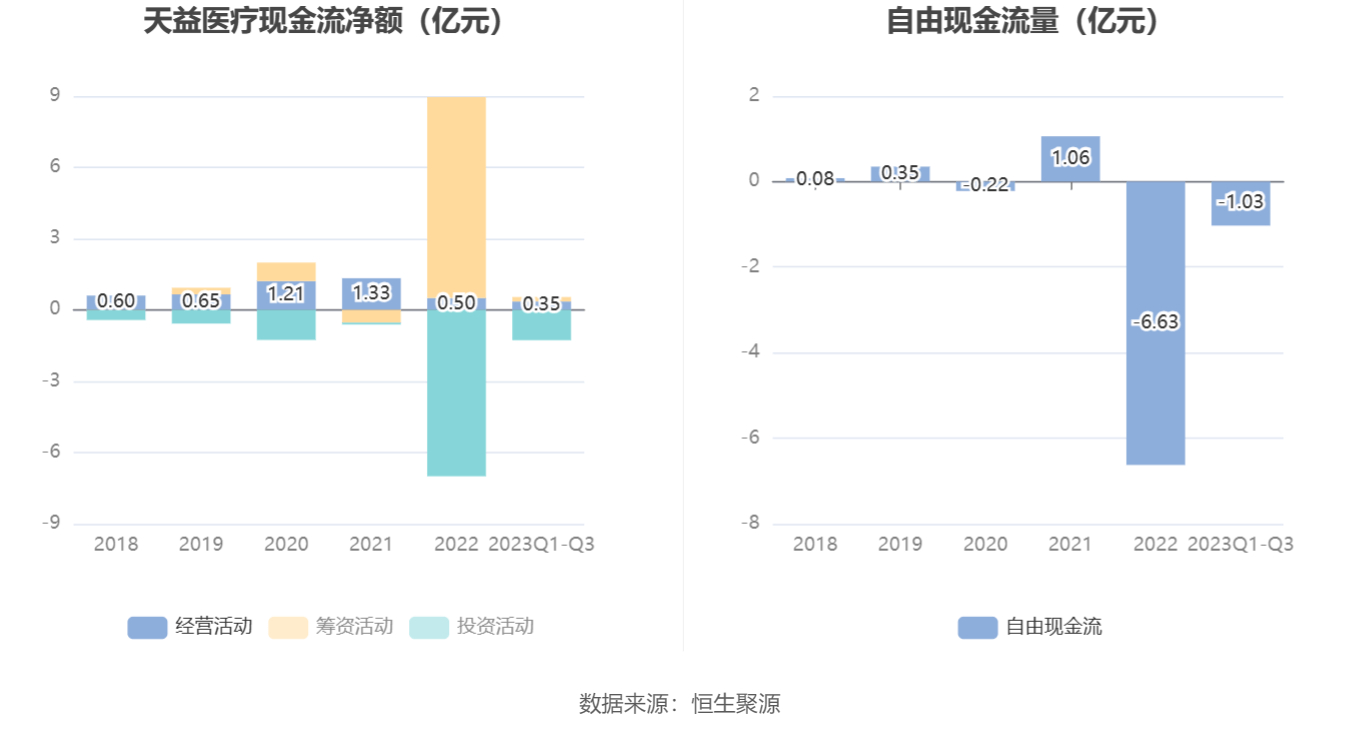 进一步统计发现,2023年前三季度公司自由现金流为-1.03亿元,上年同期为-5.91亿元。