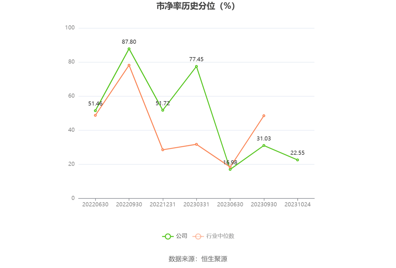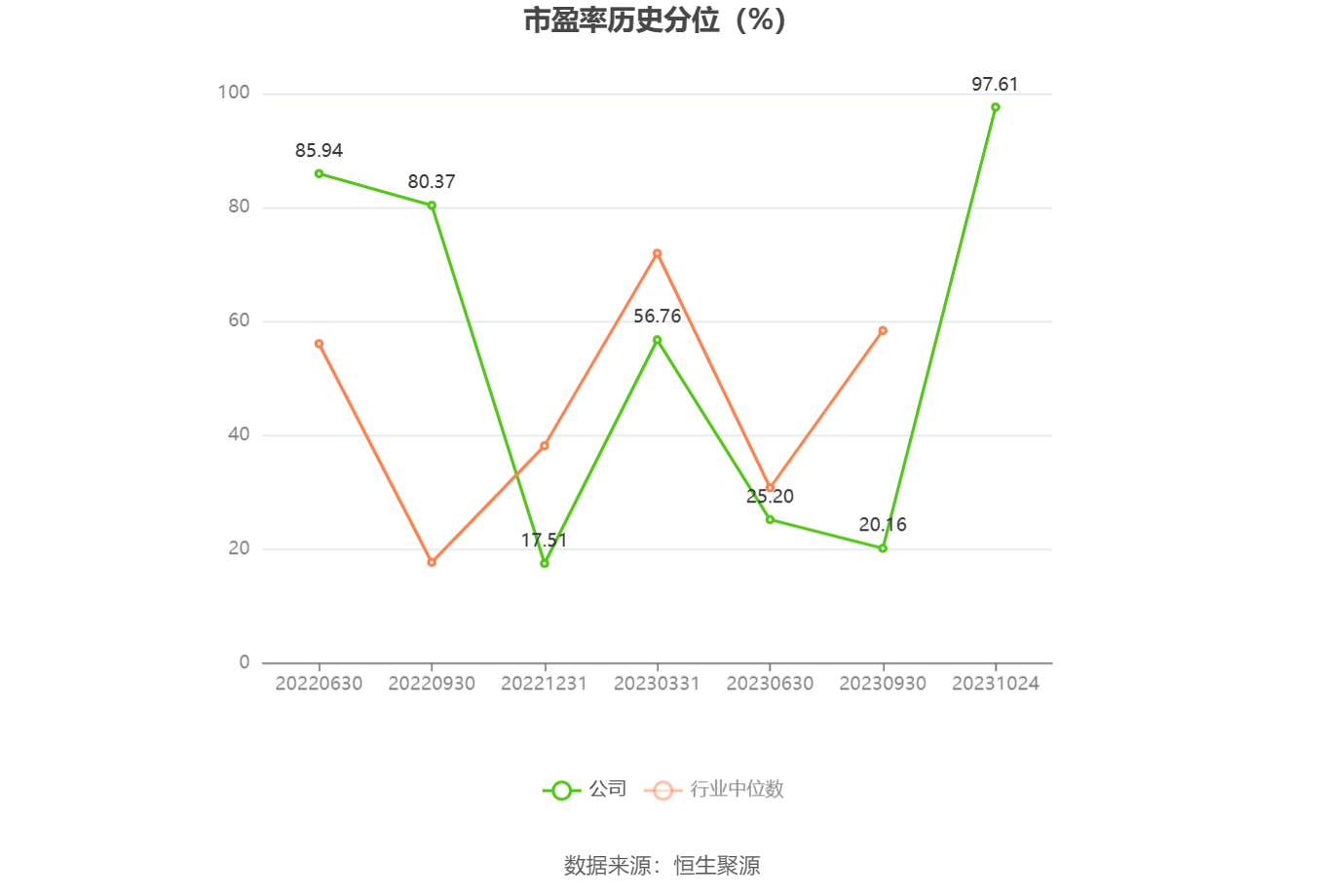 市盈率为负时,不显示当期分位数,会导致折线图中断。