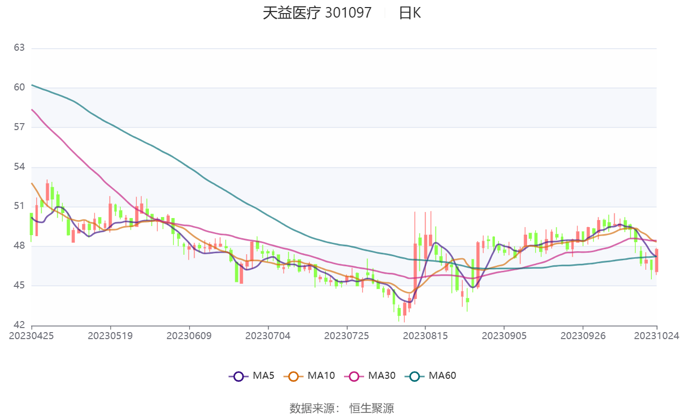 以10月24日收盘价计算,天益医疗目前市盈率(TTM)约为47.43倍,市净率(LF)约为2.22倍,市销率(TTM)约为7.12倍。