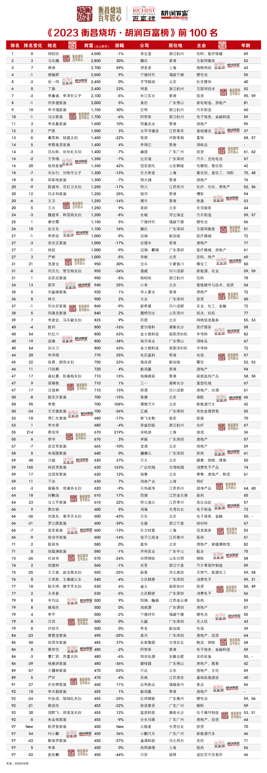 下面简单梳理一下《2023胡润百富榜》的一些看点。