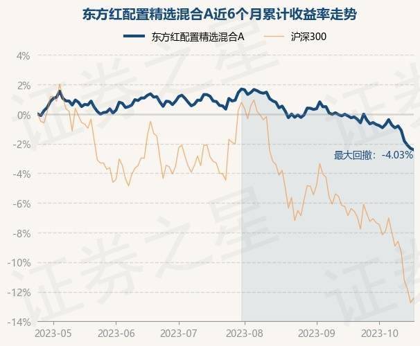 证券之星消息,10月24日,东方红配置精选混合A最新单位净值为1.3847元,累计净值为1.3847元,较前一交易日下跌0.09%。历史数据显示该基金近1个月下跌2.4%,近3个月下跌2.75%,近6个月下跌2.42%,近1年上涨4.65%。该基金近6个月的累计收益率走势如下图: