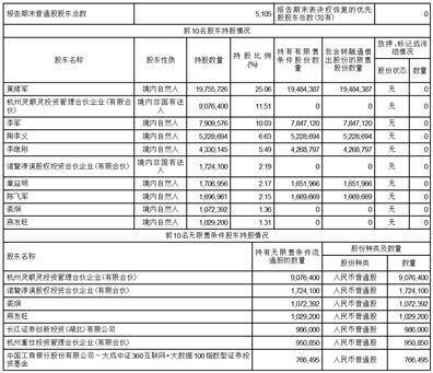 注:公司回购专用证券账户未在“前10名无限售条件股东持股情况”列示。截至报告期末,公司回购专用证券账户持有公司股份965,003股,占公司总股本比例1.22%。