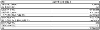根据《企业会计准则》和公司相关会计政策,公司对截至2023年9月30日的相关资产进行减值测试,根据测试结果,公司部分资产存在减值的情形,基于谨慎性原则,公司对可能存在减值迹象的资产计提减值准备。公司2023年第三季度计提各项减值准备共计17,754,868.87元,具体情况如下: