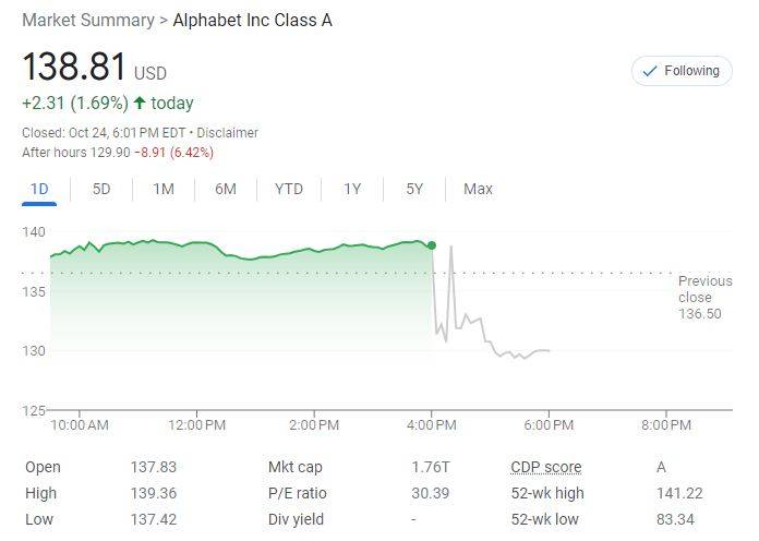 尽管三季报营收和盈利整体好于预期,谷歌云营收逊于预期,股价盘后跌超6%。谷歌A周二收涨1.7%,接近抹去上周二以来跌幅。