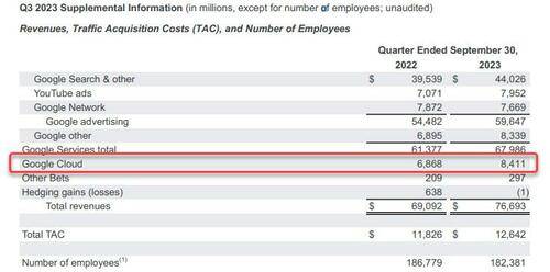 还有分析称,谷歌云业务是该公司的一个关键投资领域,随着生成式人工智能的出现,这项业务变得更加重要,因为越来越多的公司正在转向公共云来运行繁重的工作负载。