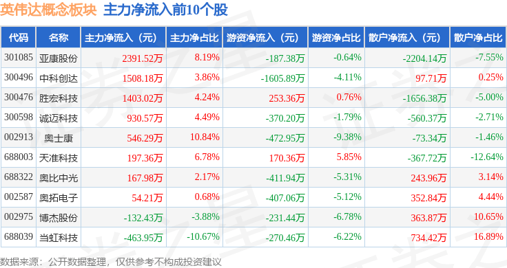 从资金流向上来看,当日英伟达概念板块主力资金净流出2.48亿元,游资资金净流出8701.85万元,散户资金净流入3.35亿元。英伟达概念板块个股资金流向见下表: