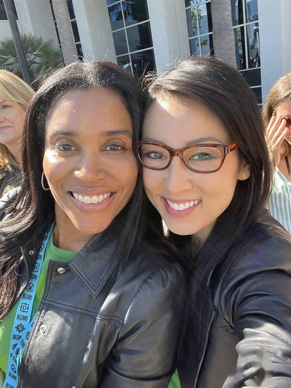 在并购大战中以一当十,战力惊人的动视公关及沟通事务负责人Lulu Cheng Meservey展示了几张自拍照,图左为微软副总裁莎拉·邦德: