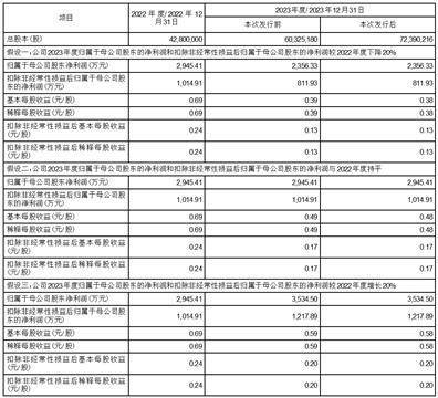 6、假设公司2023年度归属于上市公司股东的净利润、扣除非经常性损益后归属于上市公司股东的净利润分别在上年同期的基础上按照下降20%、持平和增长20%的业绩变动幅度测算。
