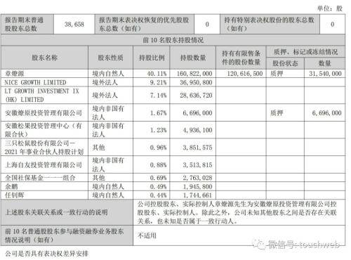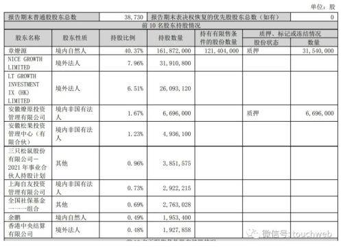 截至2023年9月30日,章燎源持股40.37%,IDG资本旗下NICE GROWTH LIMITED持股7.96%;今日资本旗下LT GROWTH INVESTMENTIX持股6.51%,安徽燎原投资管理有限公司持股为1.67%;