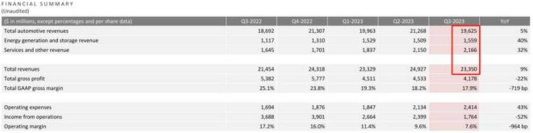 如果具体到特斯拉汽车业务的毛利率,该项业务下滑更为明显,16.3%的毛利率低于分析师预期。但特斯拉其他业务增长良好,其能源业务和相关服务业务,本季度总毛利润超过5亿美元,是二季度收入的两倍。
