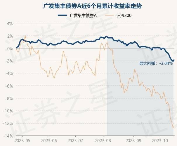 证券之星消息,10月24日,广发集丰债券A最新单位净值为1.106元,累计净值为1.35元,较前一交易日上涨0.27%。历史数据显示该基金近1个月下跌1.95%,近3个月下跌2.9%,近6个月下跌1.78%,近1年上涨2.03%。该基金近6个月的累计收益率走势如下图: