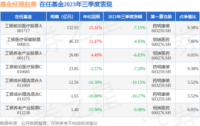 证券之星消息,截止2023年三季度末,基金经理赵蓓旗下共管理7只基金,本季度表现最佳的为工银医疗保健股票(000831),季度净值跌4.93%。