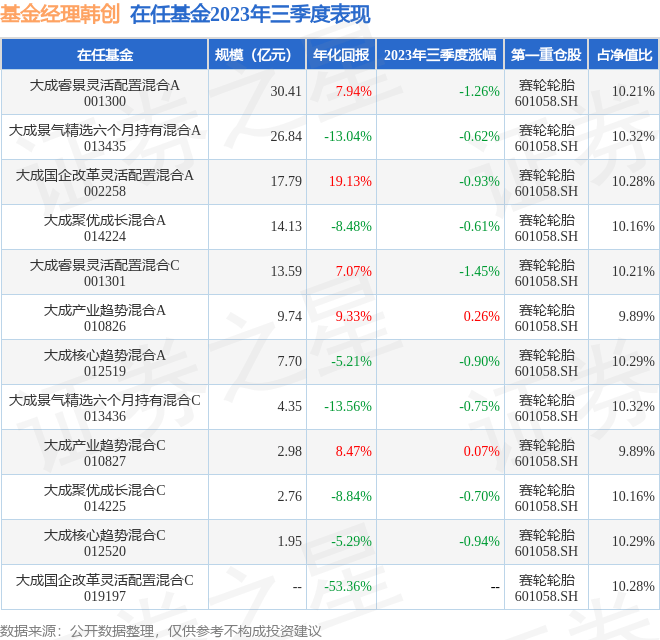 韩创管理的大成产业趋势混合A基金在22年2季度买入明泰铝业,在持有2个季度后在22年4季度卖出。持有期间的估算收益率为-29.55%,持有期间明泰铝业在2021年到2022年的年报营业总收入增幅达12.87%。