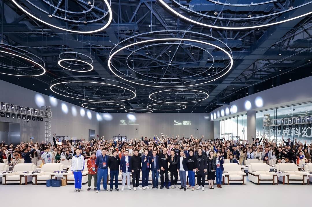 三体宇宙CEO赵骥龙等人与刘慈欣在成都世界科幻大会上
