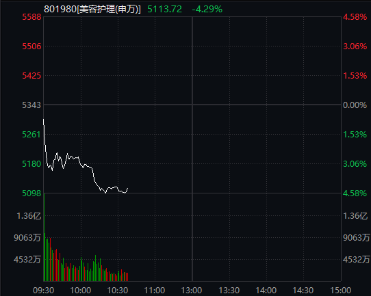10月25日上午,美容护理板块出现大跌,板块跌超4%。