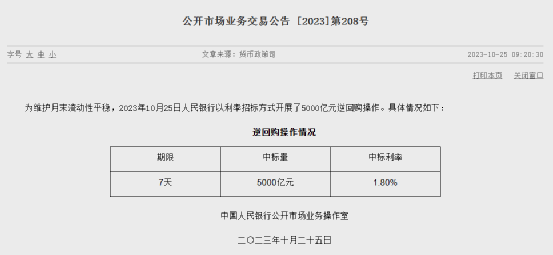 央行动作方面,为维护月末流动性平稳,10月25日以利率招标方式开展了5000亿元7天期逆回购操作,中标利率为1.8%。