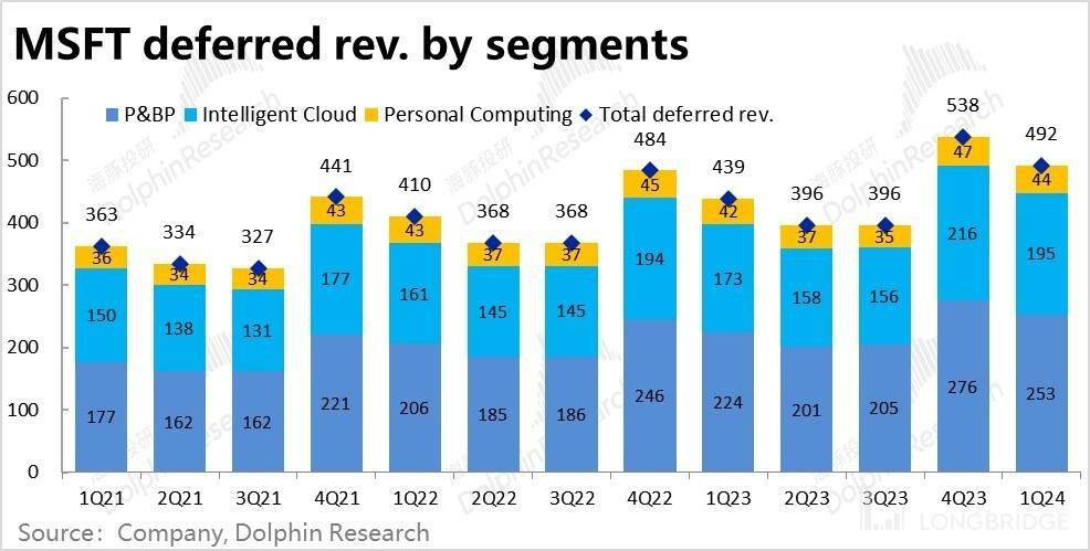 综上所述,微软各业务当季的营收多数出现了回暖迹象,那么反映未来增长的各种待确认的 “余粮 “数据表现如何?